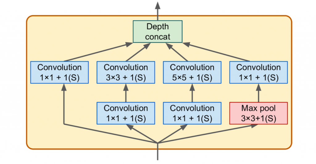 • 多尺度特征提取:网络在每一层都能同时捕捉到不同范围的上下文信息。1×1 卷积关注极局部特征,3×3 卷积关注中等区域模式,5×5 卷积则能捕捉更大范围的特征。池化操作则增强了特征的平移不变性