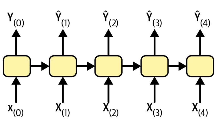 \hat{\bold{y}}(t)=\varphi(\bold{W}_{x}^{T}\bold{x}_{(t)} + \bold{W}_{\hat{y}}^{T}\bold{\hat{y}}_{(t-1)}+\bold{b})- ϕ为激活函数(比如ReLU)