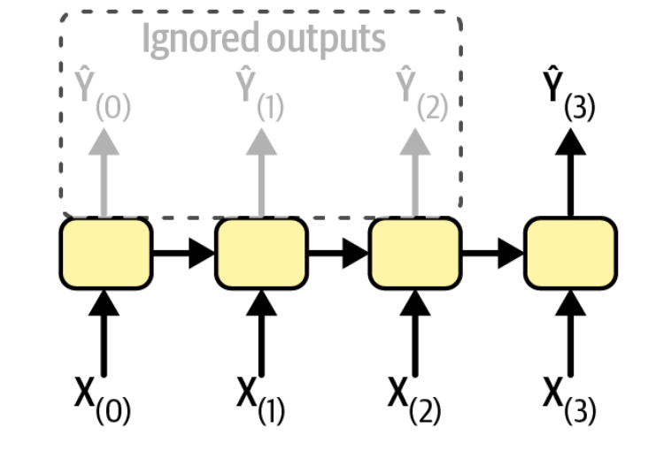 输入一段序列后,忽略之前步骤的输出,仅关注最后一步的输出。比如输入一段影评,最终输出这段影评的情感得分。
