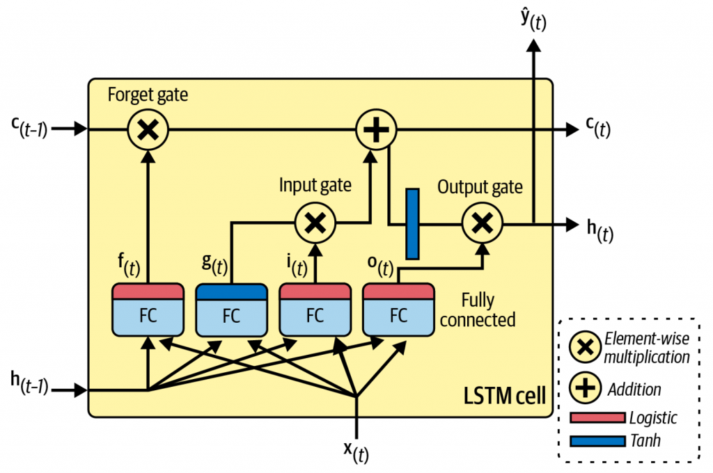 \bold{y}_{(t)}&=\bold{h}_{(t)}=\bold{o}_{(t)}\otimes\text{tanh}(\bold{c}_{(t)})