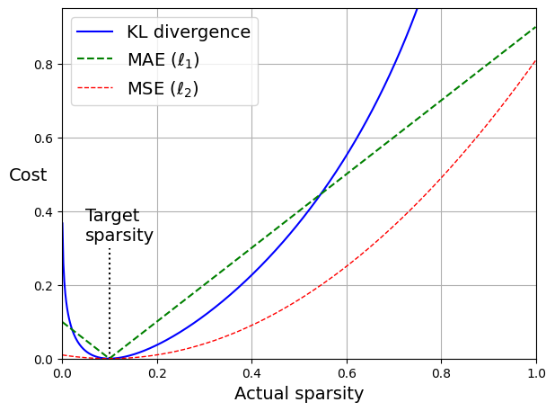 一般的做法,就是设定一个比较小的目标激活率 ρ ,当实际激活率偏离目标时施加惩罚,从而让隐藏层中每个神经元在数据集上的平均激活概率 ρ̂ 尽可能接近这个目标。